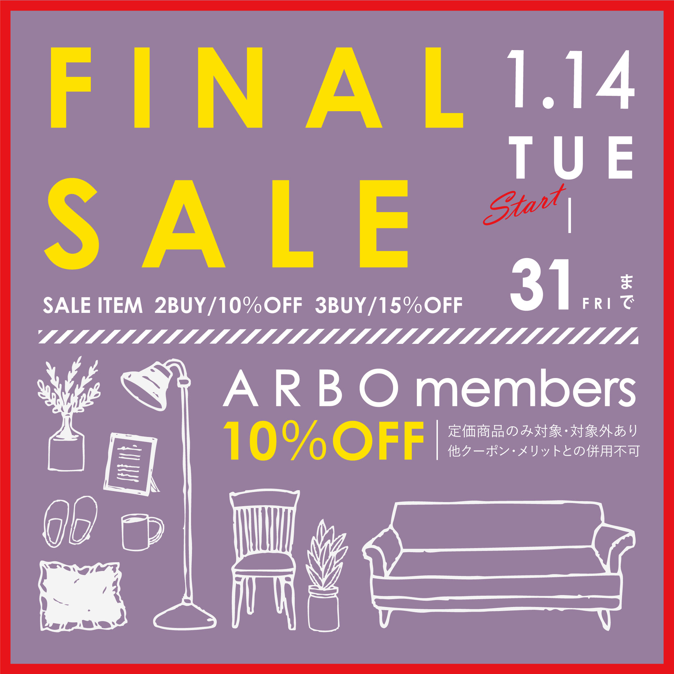 本日1月14日(火)より、セール価格の雑貨アイテムが更にお買い得になるファイナルセールを開催いたします!
