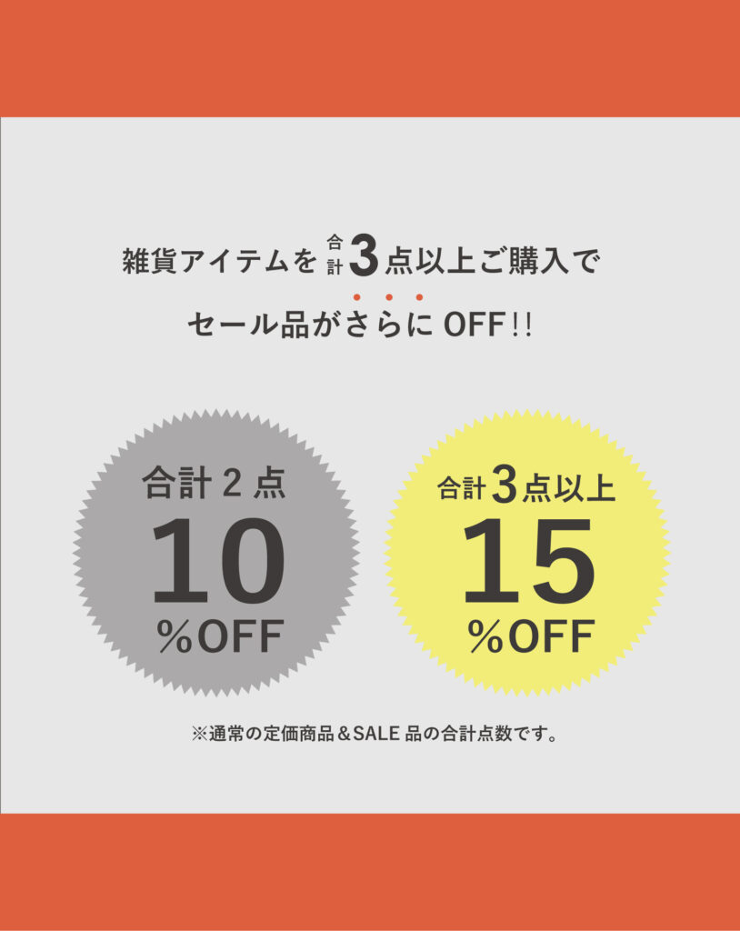 雑貨のセール商品に限り、2点以上ご購入でセール価格より10%OFF、