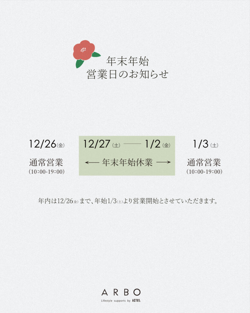2025年12月27日(土)~2026年1月2日(金)まで定休日とさせていただきます。