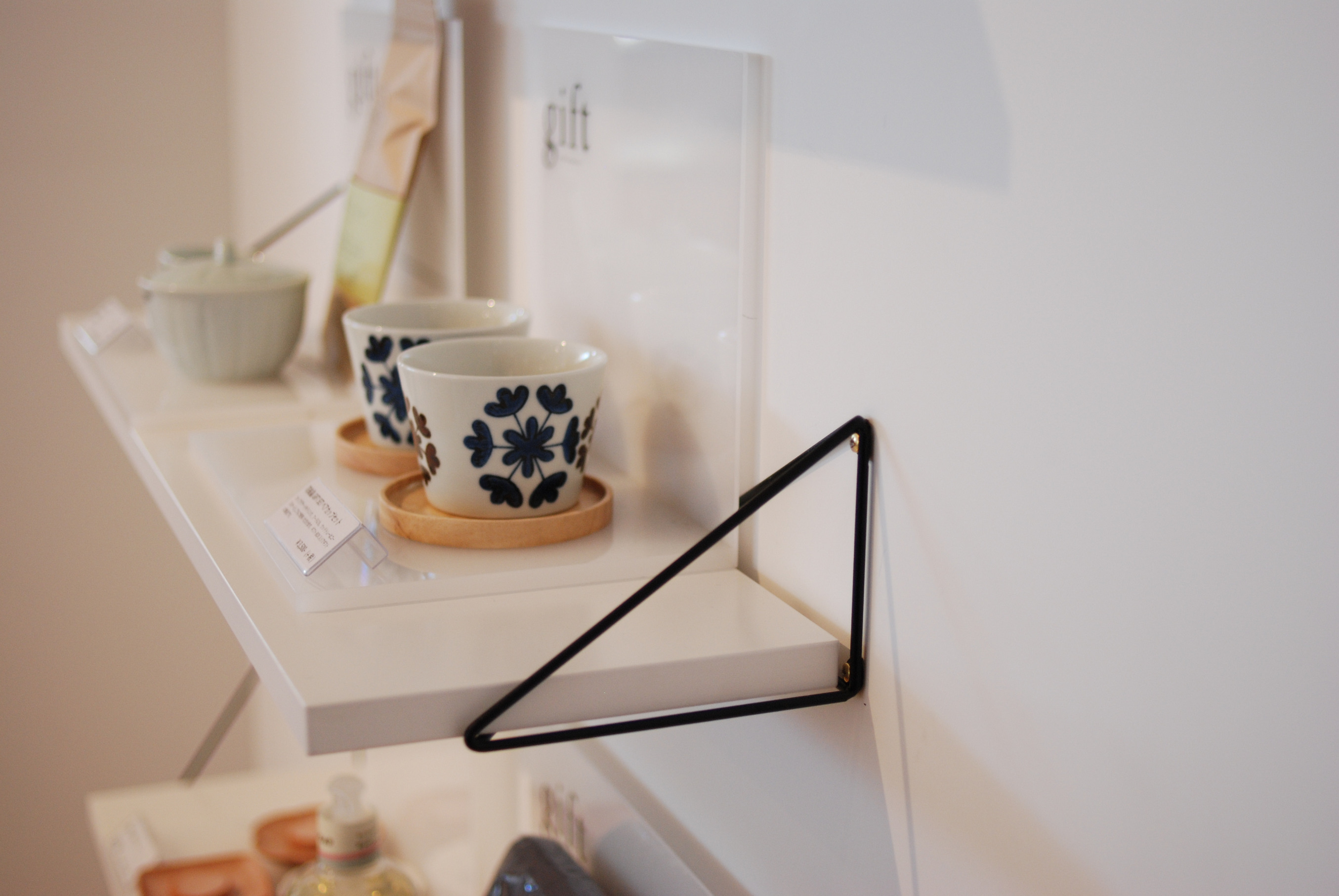 壁掛けのシェルフは展示してあるように天板をぶら下げるような使い方や、