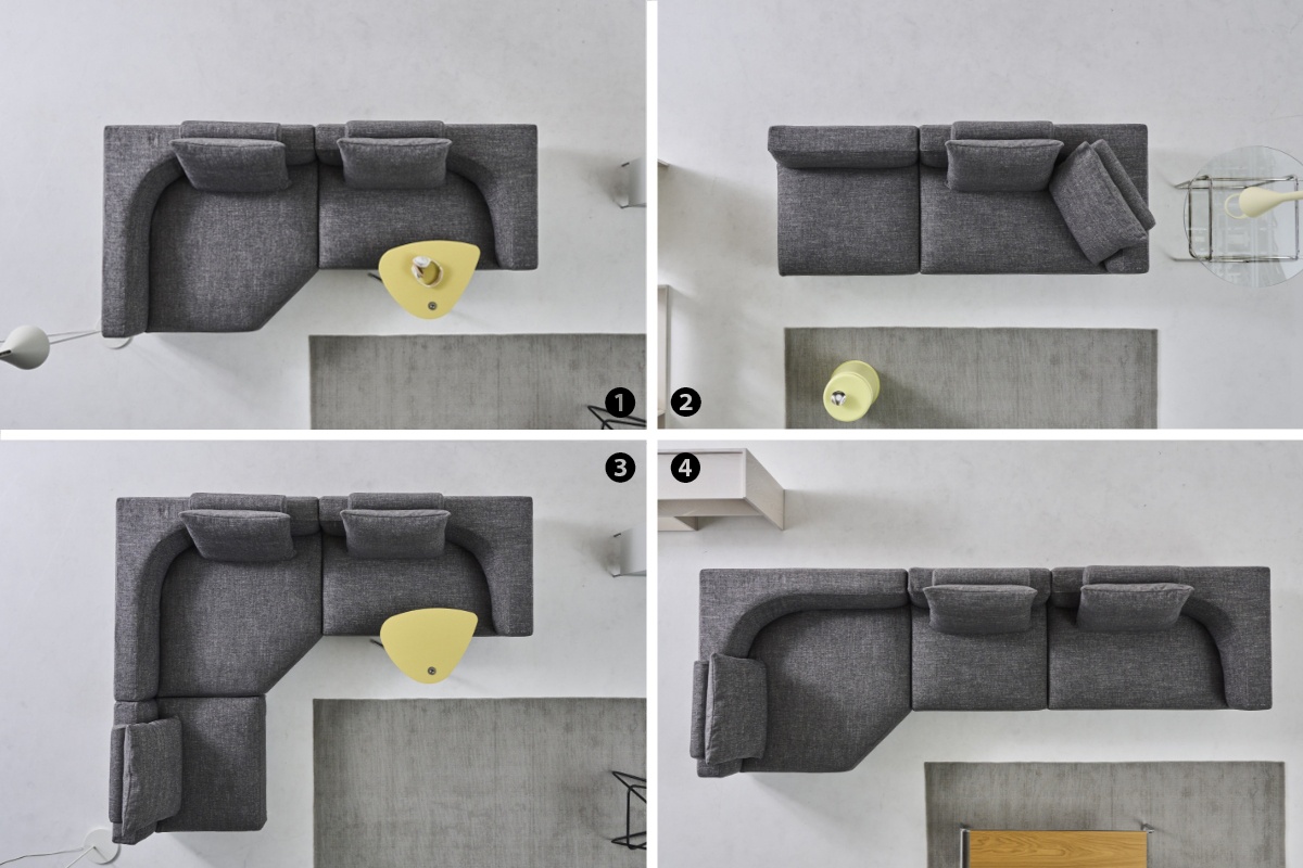 ソファはワンアームタイプ、ビッグコーナー、ノーアームタイプの3ユニットから構成されており、リビングの広さや形に合わせて自由に組み合わせが可能です◎