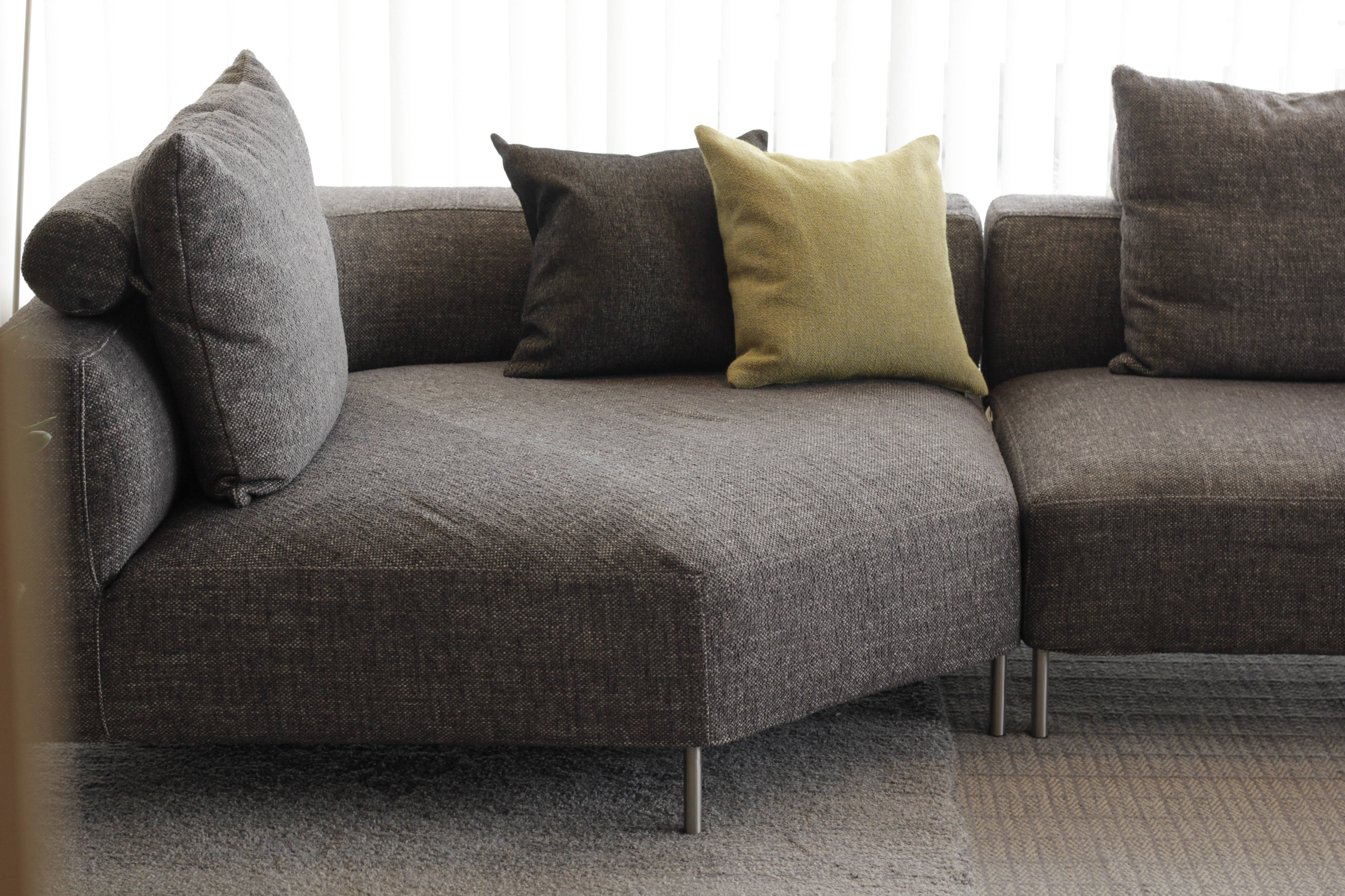 ふっくらとしたボリュームがありながら、60㎝の低い座面とスマートな金属脚によってリビングを軽やかでスタイリッシュに演出します。