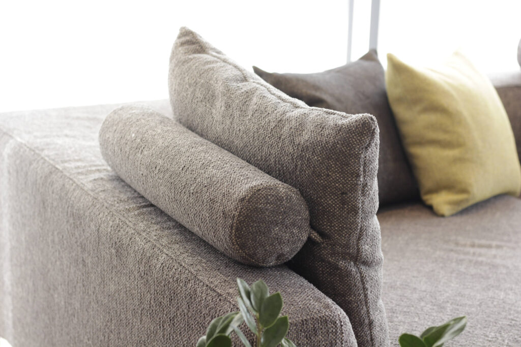 ソファ本体の背もたれは低めですが、1モジュールに付き1つの背クッションが付属しています。